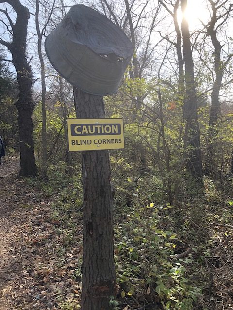 I found this sign to be most amusing. I think this could be posted just about anywhere. Blind Corners straight ahead. The warning sign would