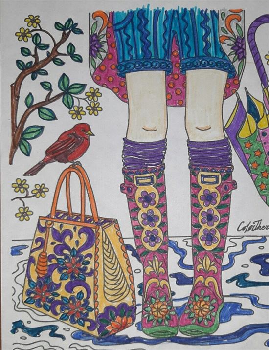 Coloring pages have gone up-scale. When I swam laps at five A.M. in the morning, several of the desk girls would be coloring. I found