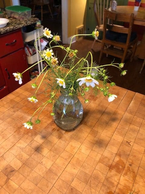 These cosmos were late bloomers. They have hung around late into the fall. They didn’t act like cosmos, they didn’t shoot straight up, instead they