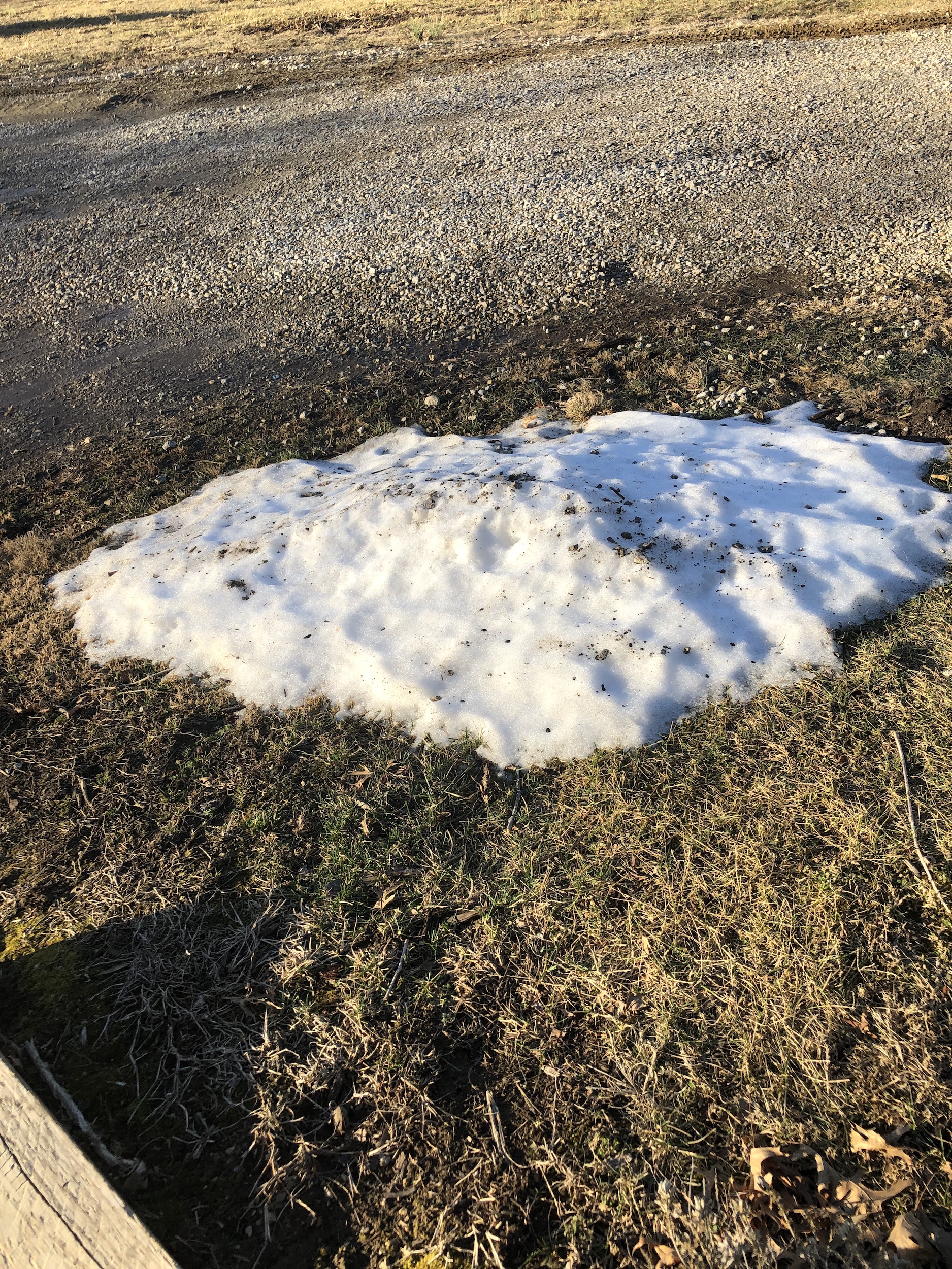 It’s 82 degrees. Yet this snow remains. Reminds me of the last ten pounds after having a baby- it just hangs on.