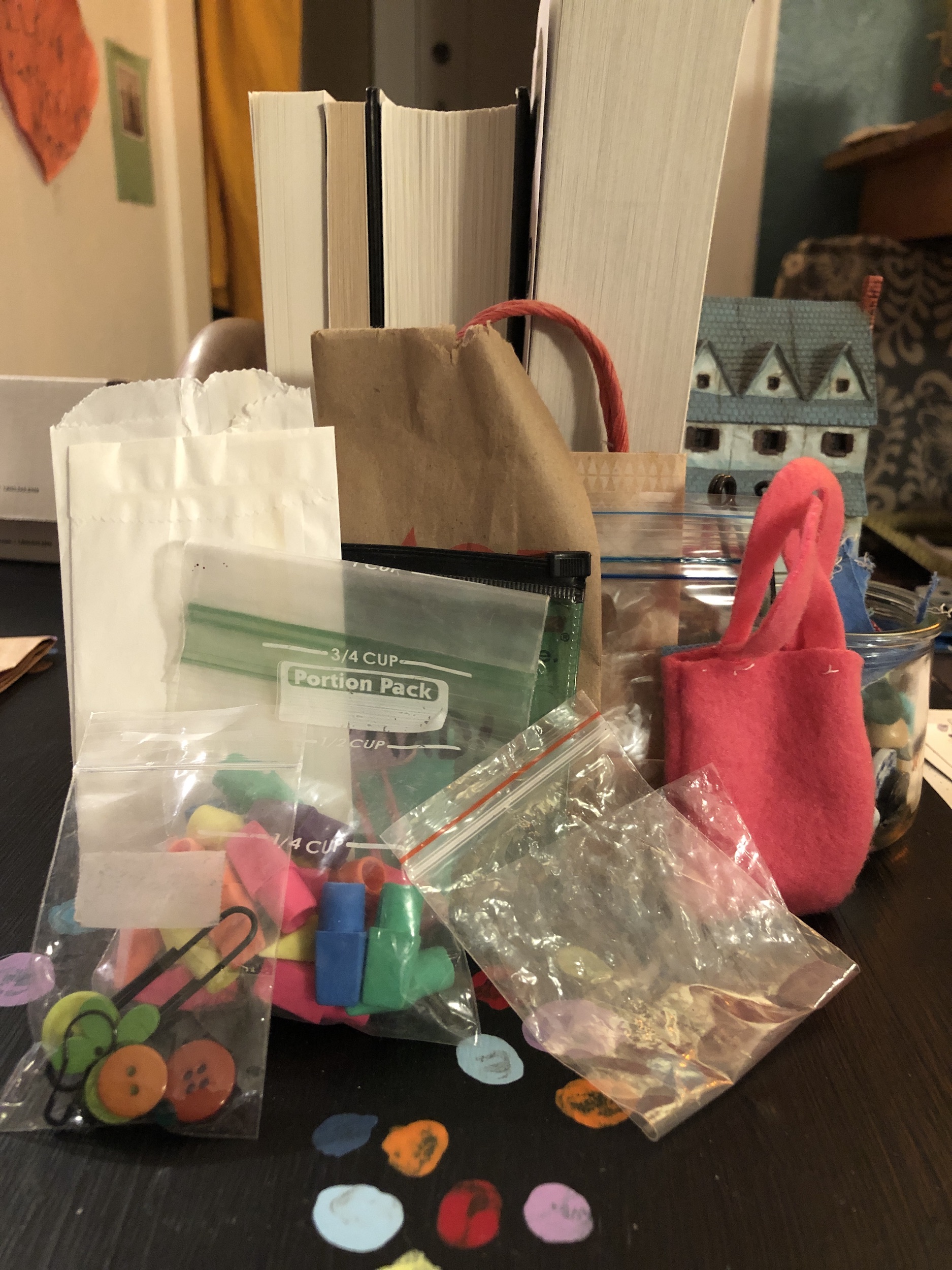 I love tiny bags, medium sized bags, big bags, colorful bags, paper, plastic, material made, whatever. I squirrel them away for whenever I might have