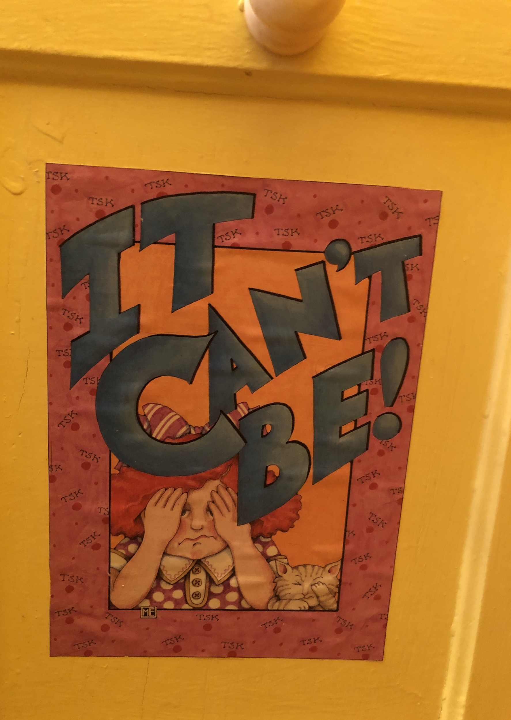 When we moved into our house, some twenty years ago, I cut out pictures from Mary Engelbreit’s calendar, and modge podged them to various walls