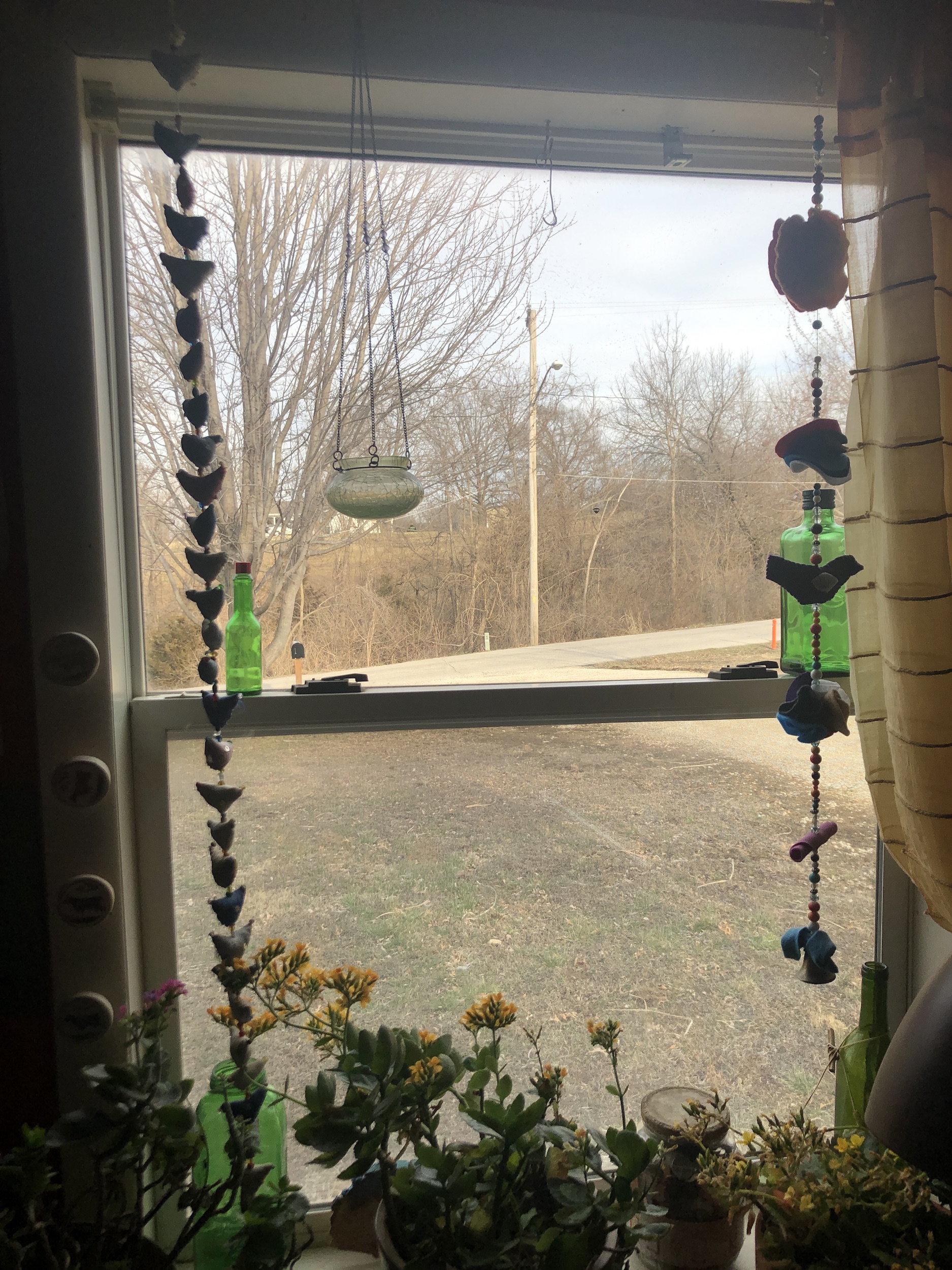 See the yellow flowering plants? They are about to move outside for the summer. Do you have plants just hanging around or sitting patiently on