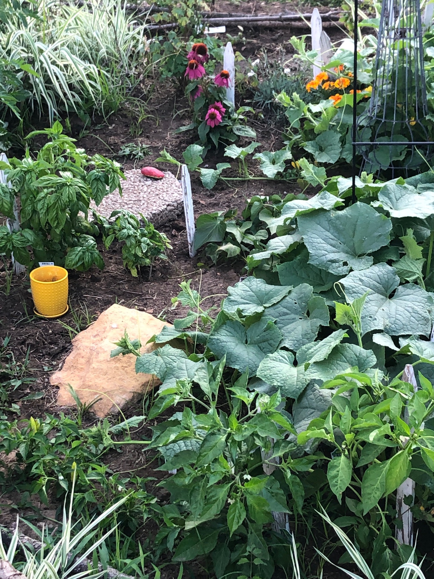 It begins. I was able to use a few basil leaves and 3 peppers out of my small garden today. I didn’t detect much “heat”