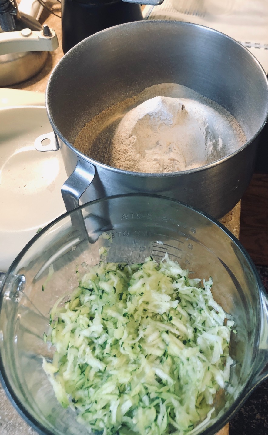 Today I ground wheat and grated zucchini. I made 6 loaves of zucchini bread. This is my 3rd batch of breads. I’ve made 16 loaves