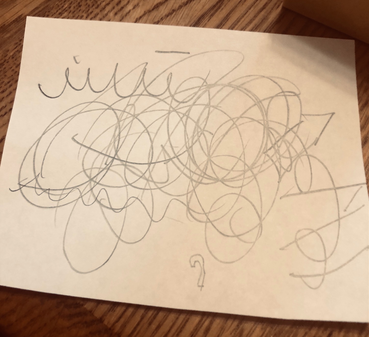 See that pencil drawing? Mr.Fix-it guessed hurricane, with seconds to spare, on an All play in a game of Pictionary. It didn’t lead us to