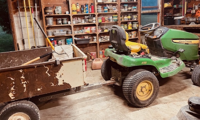 Today mid afternoon hubby and I tractored along our street sweeping and shoveling up our errant rock drive way, that drifted down the road all