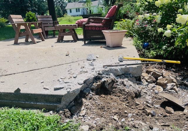 Mr. fix it is at it again. This time he is breaking up concrete. Of course it is hot- hot -hot. He is not bothered